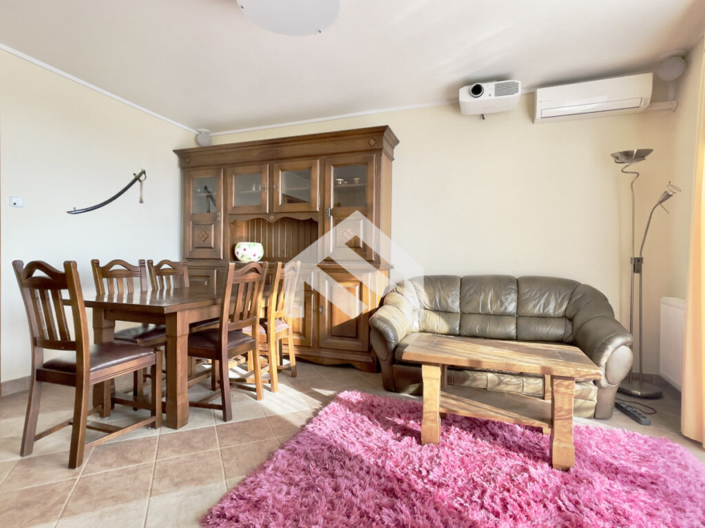 Lokal został wykończony w wysokim standardzie, z dbałością o detale. Jest cichy, słoneczny, z ekspozycją wschodnią i wyposażony w klimatyzację. Mieszkanie jest w pełni umeblowane solidnymi, litymi meblami i gotowe do wprowadzenia od zaraz.