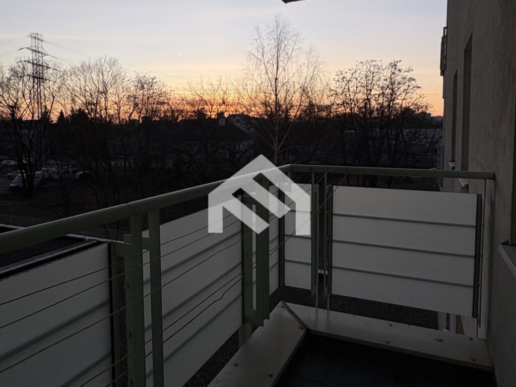 balkon z przyjemnym, spokojnym widokiem, który zapewnia dodatkową przestrzeń do wypoczynku.
